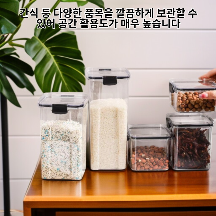 ● 투명 디자인으로 내용물을 한눈에 확인할 수 있어 식품 관리가 매우 편리하며, 다양한 건조식품과 간식 보관에 최적화된 다기능 밀폐 저장 용기입니다.